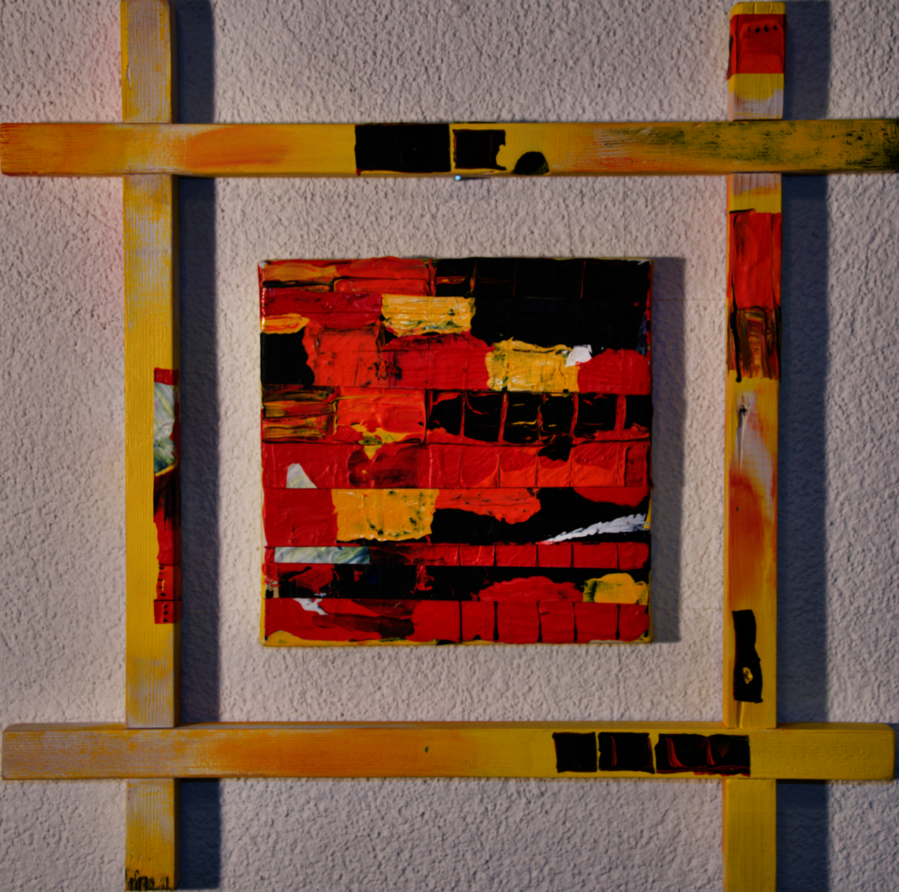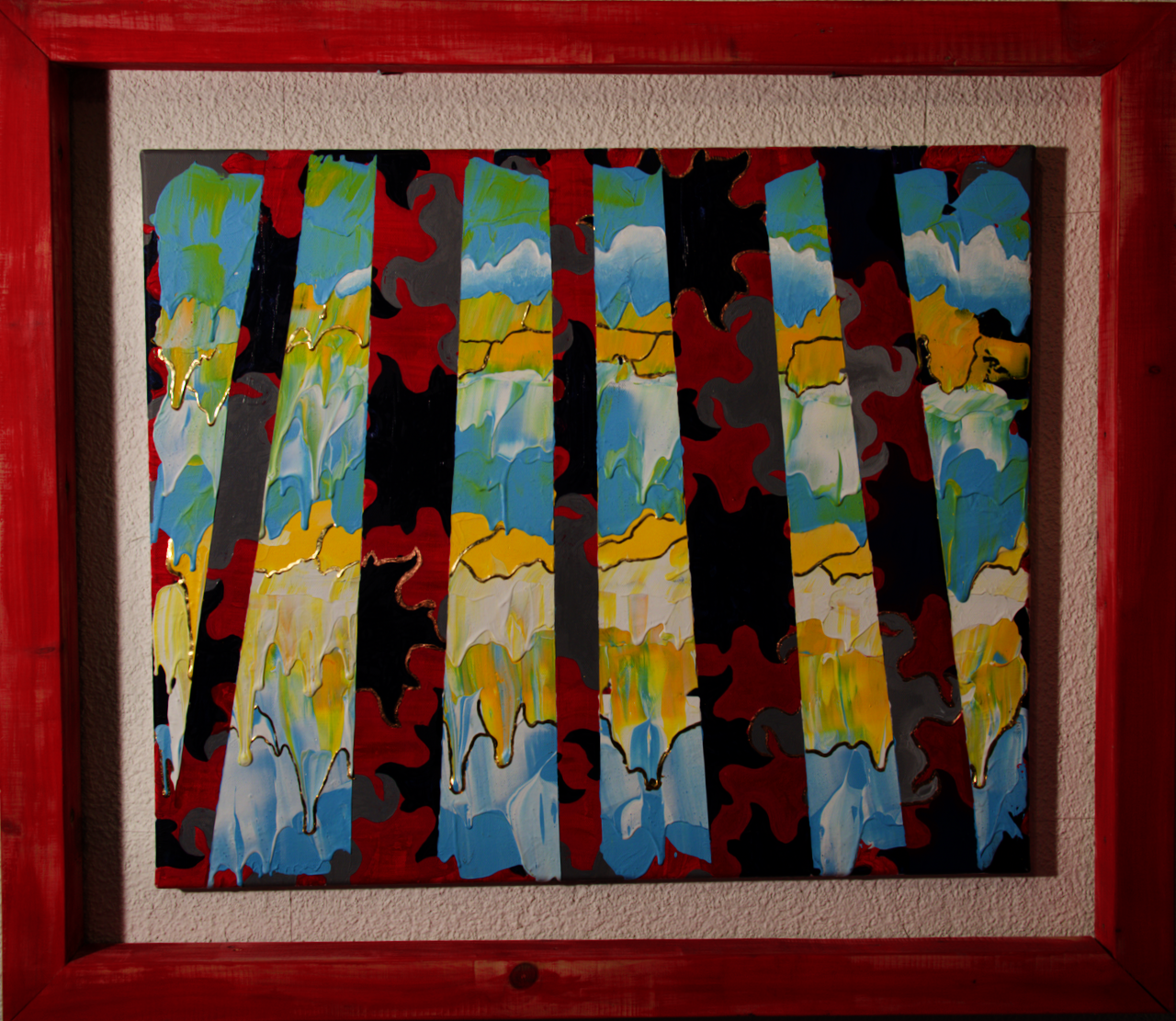 Meine Werke auf Leinwand versinnbildlichen diese Weltanschauung, scheint die Farbe doch über die Leinwand zu fliessen. Manchmal wild und in alle Richtungen manchmal ruhig und kraftvoll, manchmal verspielt und leicht.